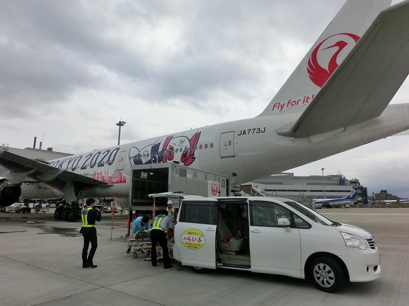 佐賀県内で療養中で体温調節が必要な患者様を、平塚市内の病院まで飛行機にて随行搬送。佐賀空港に担送対応車両が無いことが判明し福岡空港からの出発に急遽変更。約3ヶ月にわたって医師・SW・家族との綿密な打ち合わせと航空会社の手配を含めたすべての調整を当社が行い、万全の態勢をとって無事に搬送を完了しました。