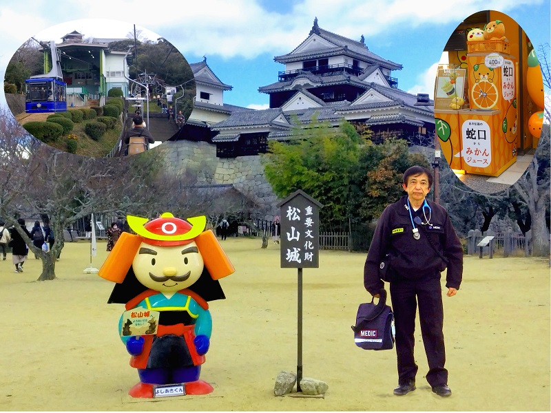 年末最後に川崎市内の大学附属病院から脳疾患で陸送限定(頭蓋移植後)の患者様を、新幹線活用にて四国の伊予市まで転院搬送。岡山からは同業者の連携を受け、今回も笑顔のある状態で約7時間の移動を完結。35年ぶりに訪れた松山でしたので、道後温泉に宿泊して1年間の労を癒し。翌日、NHKドラマ『坂の上の雲』ミュージアムと萬翠荘を見学し、ヒョウが降る寒い天候でしたがリフトに乗って松山城に登山。蛇口からポンジュースを飲んでから飛行機にて帰途につきました。