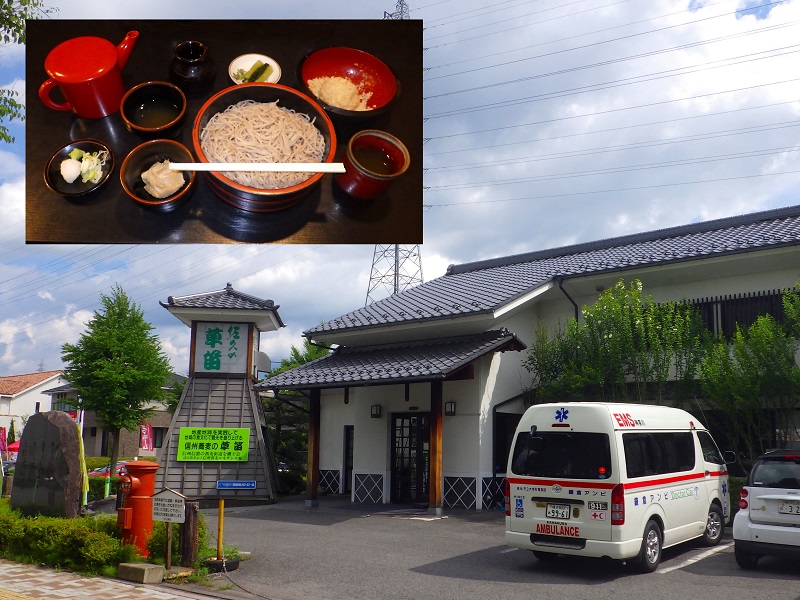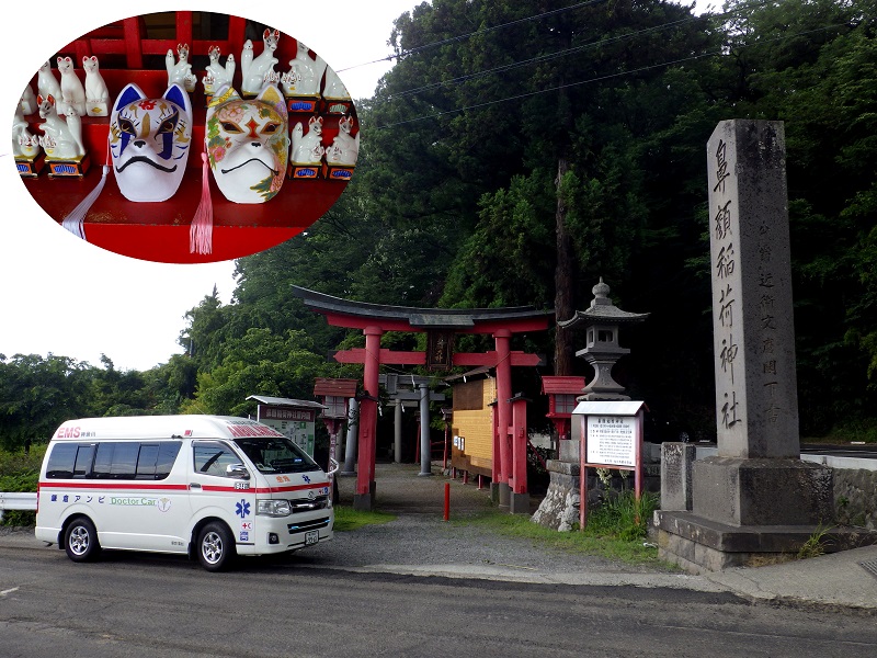 横浜市から佐久市まで総合病院間の転院で、腹腔穿孔予後によりドレーンバッグ装着の患者様を移送。早い梅雨明けにより蒸し暑いなかでの搬送となりましたが無事に到着。すでに数回訪れた佐久でしたが、地元の方から勧められた「草笛クルミそば・クルミおはぎ」を堪能。5大稲荷のひとつとして有名な「鼻顔(はなずら)神社」に参拝し、コロナ終息を含めた皆様の家内安全を祈願致しました。