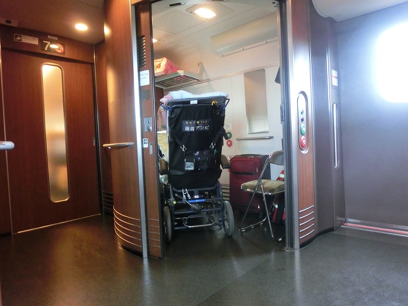 横浜市内の自宅療養中の患者様を、鹿児島市内の総合病院まで新幹線の多目的室を利用したのぞみ・さくら乗換対応で約7時間の随行移動。今回の移動も総合病院からの依頼で、航空機と同様に新幹線チケット等の行程すべてを当社が代行プランニング。折しも九州北部豪雨の合間で、なんとか西郷どんに会うことができました。